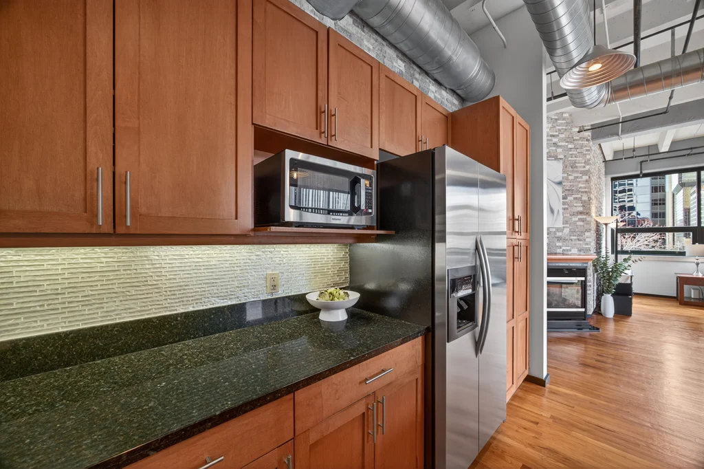 Maximize your purchasing power with an incredible CLOSING INCENTIVE: the seller will prepay 6 months of HOA fees at closing, and for a prompt, competitive offer they will cover 12 full months of dues. When you use our preferred lender, the lender will cover a 1% interest rate buy down for the first year, giving you even more monthly savings. Step into this light-filled 4th-floor corner loft with stunning city and mountain views. With 13-foot ceilings and hardwood floors throughout, it feels airy, warm, and effortlessly stylish from the moment you walk in. Enjoy the best of both worlds in a historic brick building built in 1908 with a residence constructed in 2001, offering the charm and character you want with the modern comfort you need. Picture slow mornings in the open kitchen with granite counters, a gas stove, and stainless appliances, then gathering friends in the dining area and living room framed by striking stacked-stone accent walls and a cozy gas fireplace. Step onto the balcony when you are ready for fresh air and take in those city and mountain views. The layout lives beautifully with two bedrooms and two bathrooms, including a primary suite with an en suite bath, dual sinks, and a walk-in closet. The second bedroom works perfectly as a guest room, office, or both, with generous closet space and easy access to a remodeled 3/4 bath. Everyday life is easy with in-unit laundry plus a new washer and dryer (2025), secured entry, an on-site fitness center, and two deeded tandem parking spaces with an included storage unit in a secured underground parking garage. Isbell Lofts sits where LoDo meets Denver’s Central Business District, about a 10-minute walk to Union Station, Coors Field, and the 16th Street Mall, with easy access to Ball Arena, Empower Field at Mile High, RiNo, Larimer Square, and some of the city’s best dining and entertainment. Plus, Skyline Park’s dog park is nearby for your four-legged friends.