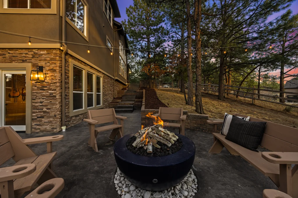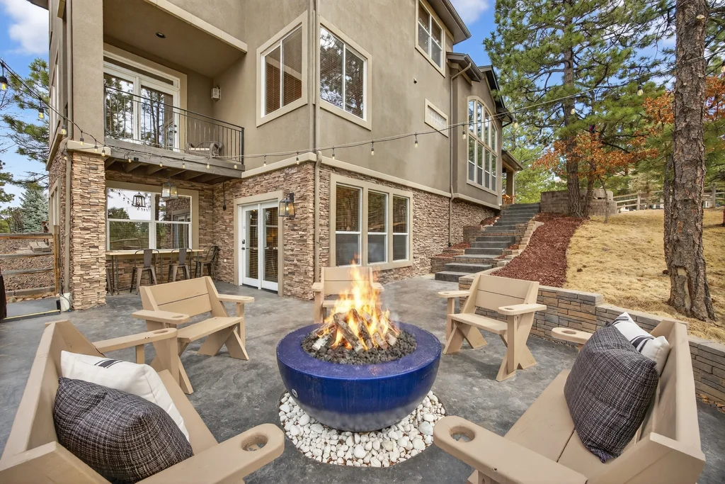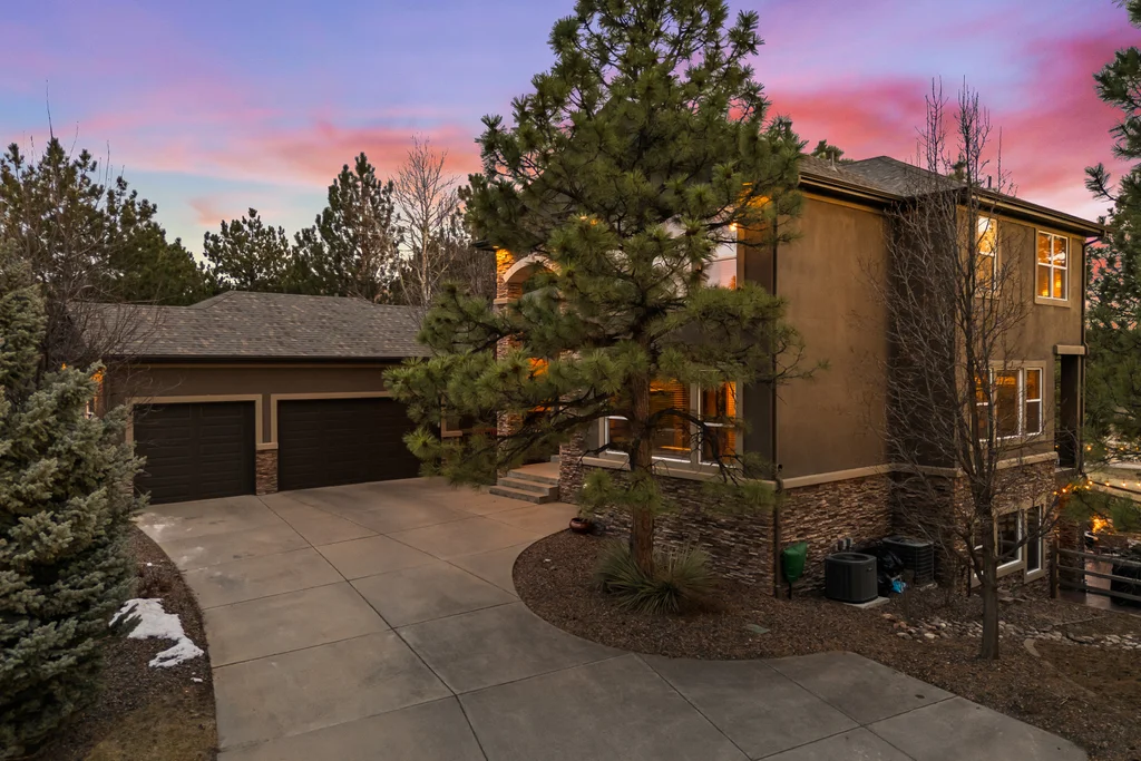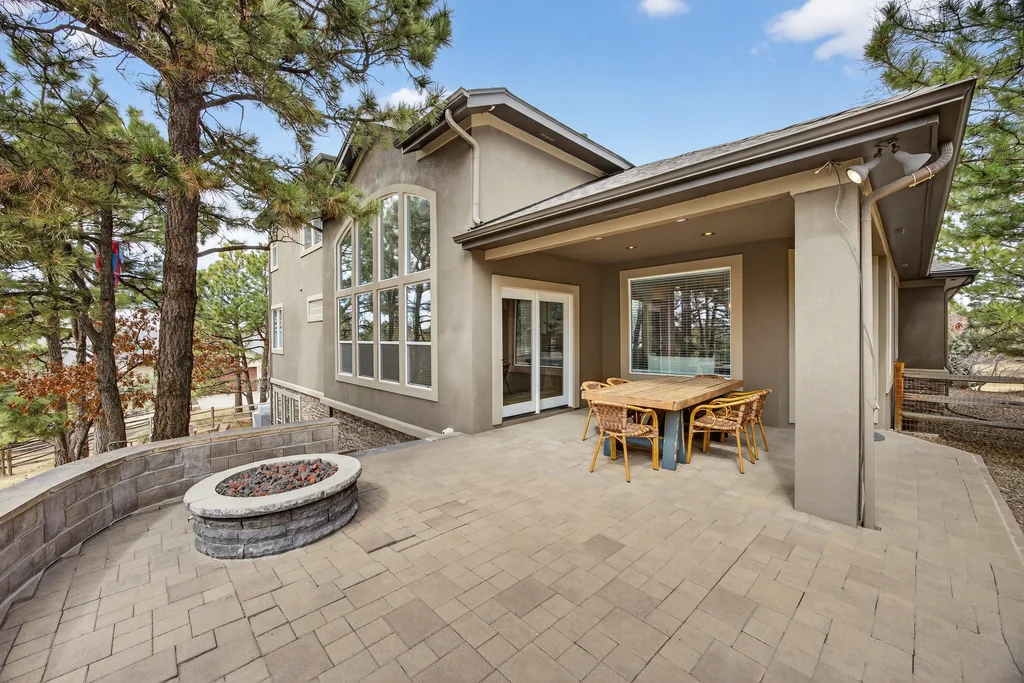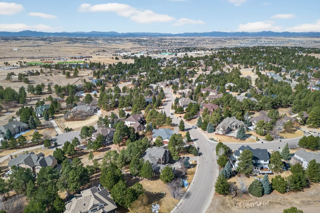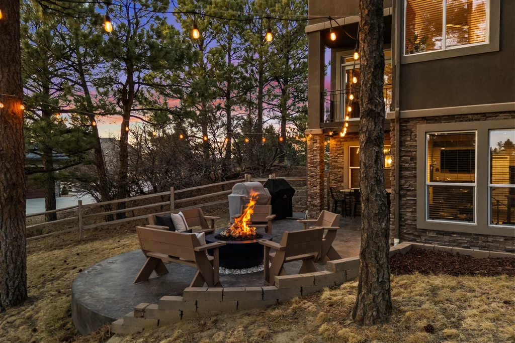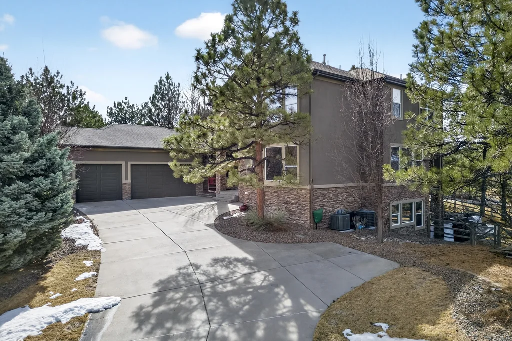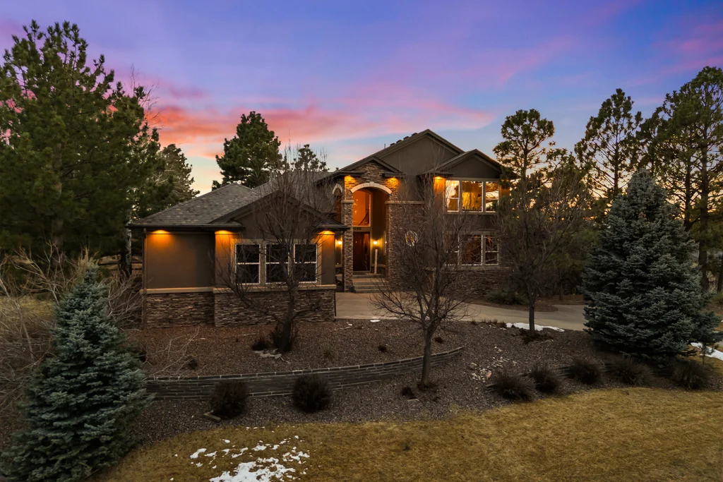 Set in The Timbers at The Pinery, this beautiful home offers peaceful Colorado views, privacy, and an ideal layout for everyday living and entertaining just minutes from downtown Parker. With over 4,800 finished sq ft, 5 bedrooms and 6 baths, the floorplan shines with a main-floor primary suite featuring a cozy fireplace, 5-piece bath, and oversized walk-in closet, plus a main-level office with built-ins, closet, and adjacent full bath that functions perfectly as a guest suite. The heart of the home is the expansive, two-story family room and the large eat-in kitchen complete with new countertops, new appliances (including a Bosch dishwasher 2023), updated hardware/fixtures, pantry, and a second sink on the island, flowing seamlessly to the dining space with a striking two-sided fireplace. Upstairs, discover three oversized bedrooms, each with its own private en suite, enhanced with thoughtful touches like added barn doors. The finished walkout basement is designed for fun and flexibility with a granite-topped wet bar (sink, beverage fridge, dishwasher), spacious game/flex areas, theater/movie room, and impressive storage including a finished storage room near the bar. Step outside to enjoy multiple outdoor living spaces: a covered upper patio with gas fire pit with access from the kitchen and living room, plus a lower concrete patio with fire pit, gas line for grill, new retaining wall and stairs, and newer fencing (property extends beyond the fenced area). Tech and comfort upgrades include programmable interior/exterior lighting, auto locks, Blink doorbell/cameras, radon mitigation, and wiring for EV charging (240V/50A). The roof is 2 years old with transferable warranty, and mechanicals have been recently serviced. A rare opportunity to own a truly turn-key home on a large, private lot in one of Parker’s most sought-after communities.