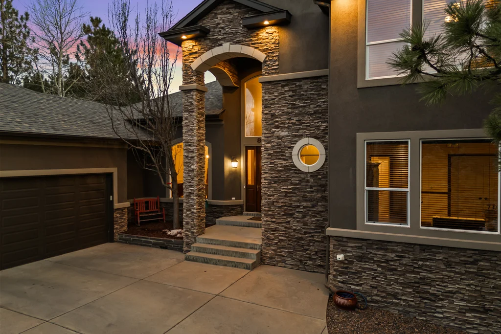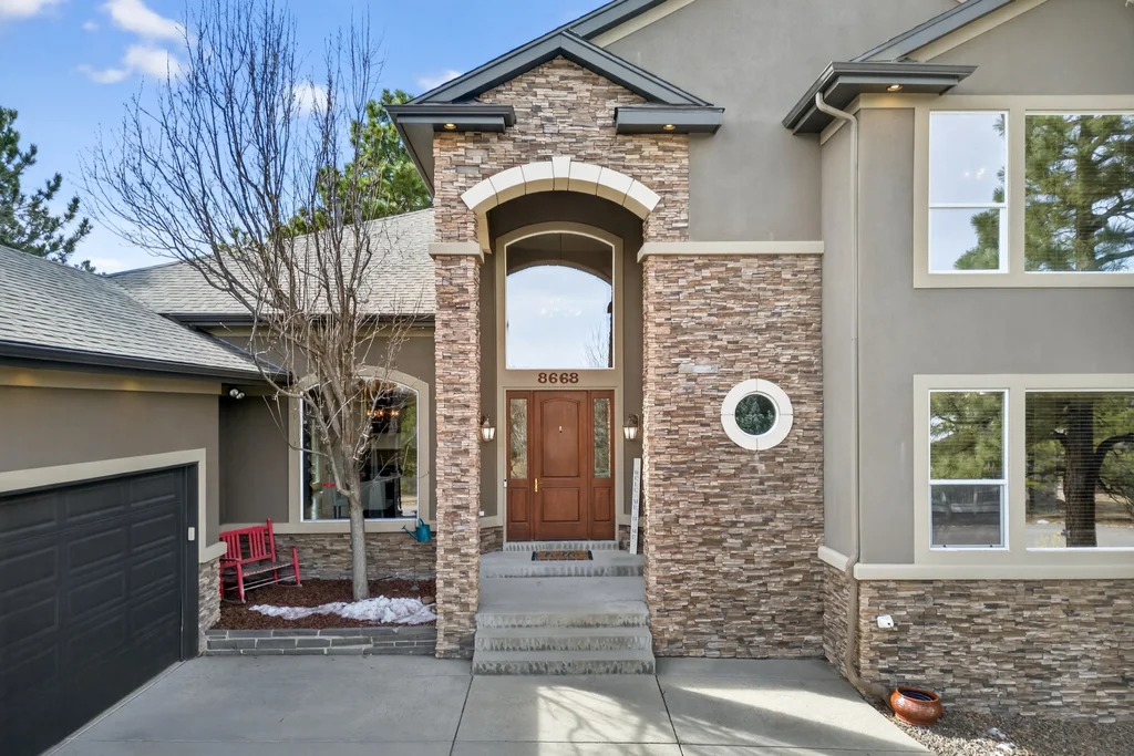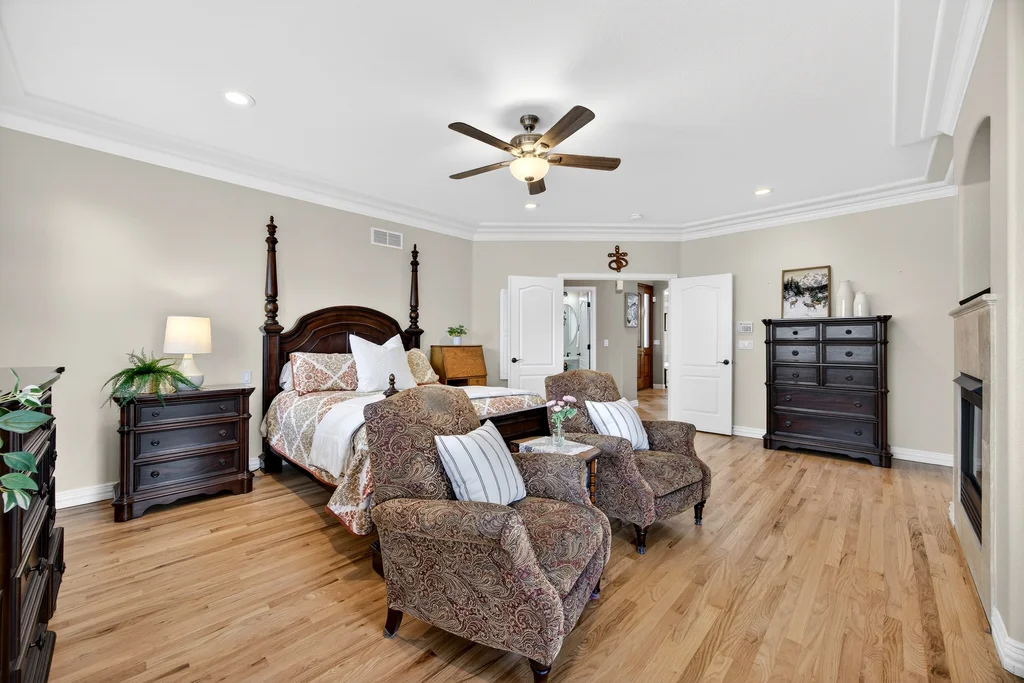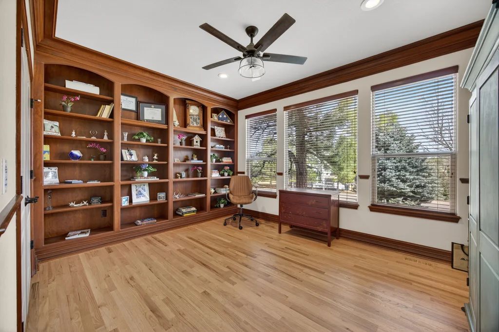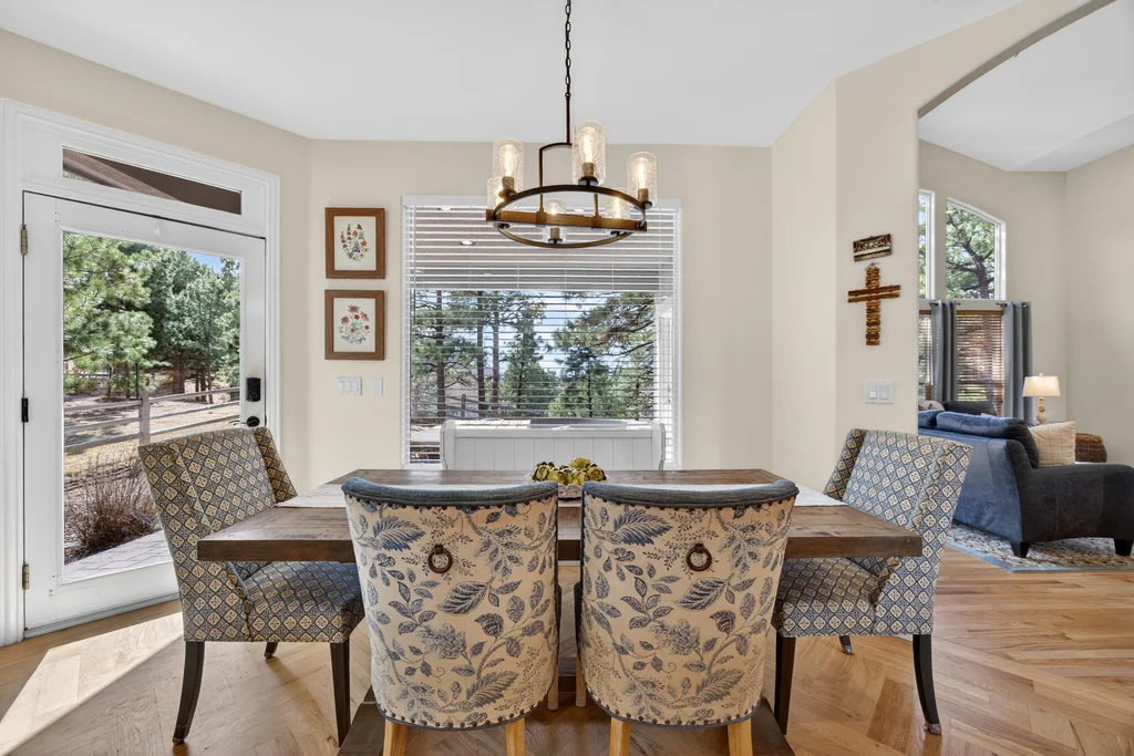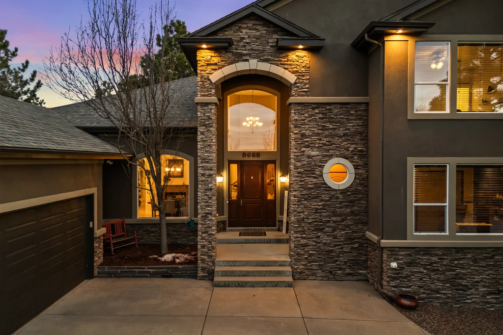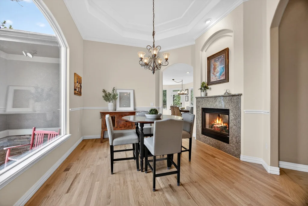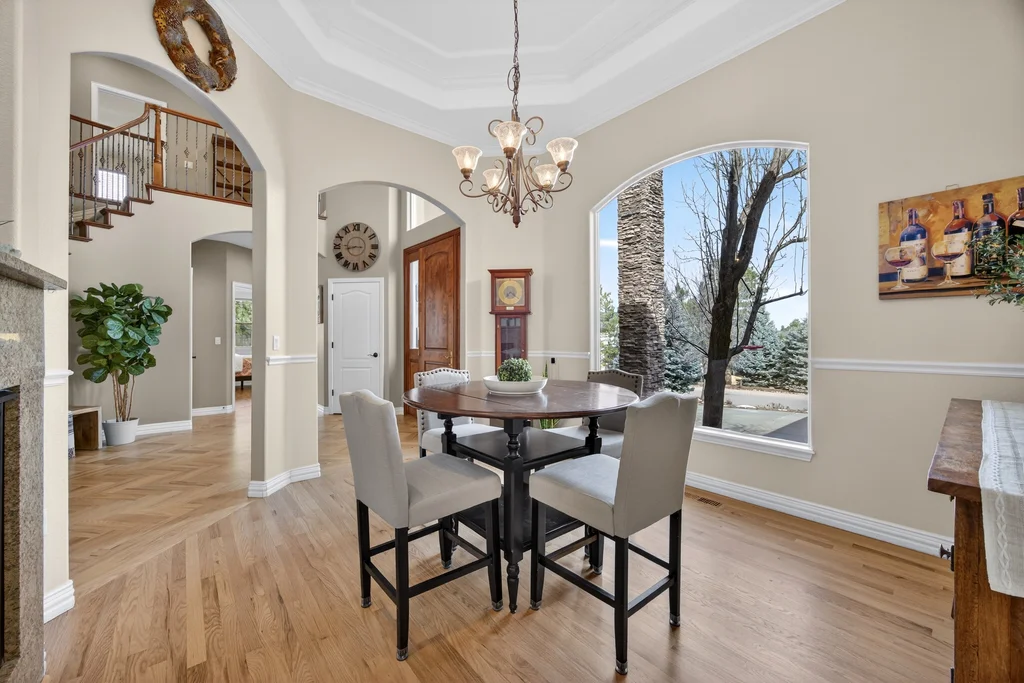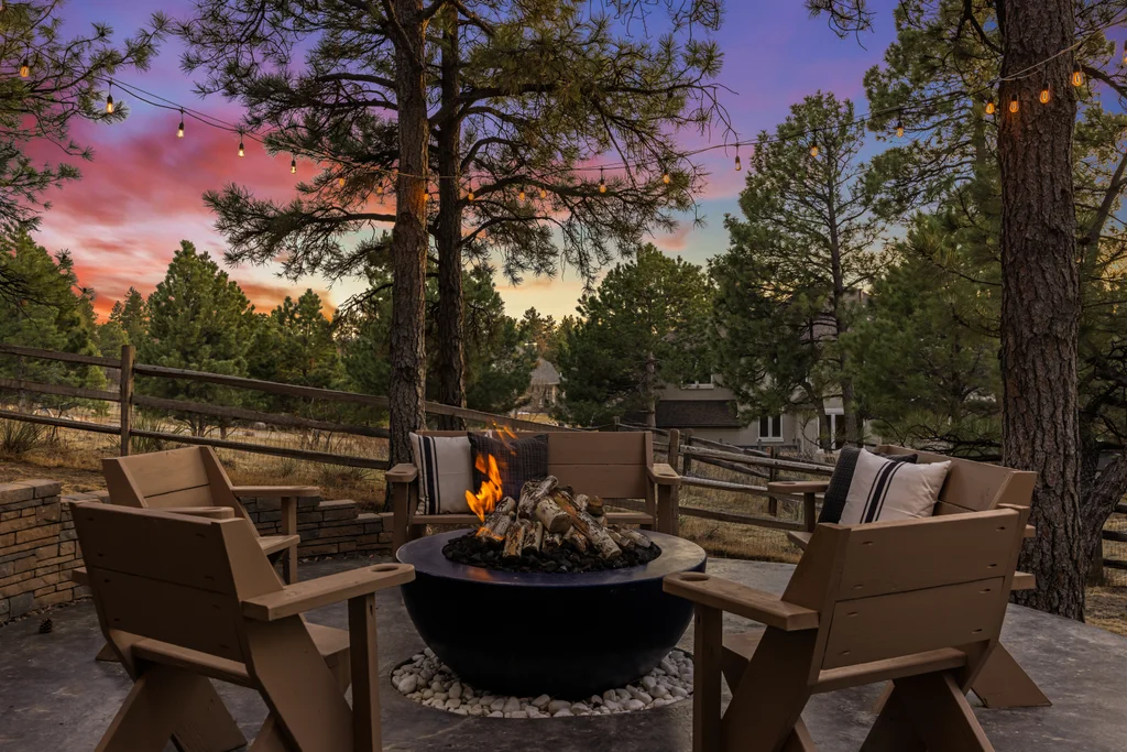 Set in The Timbers at The Pinery, this beautiful home offers peaceful Colorado views, privacy, and an ideal layout for everyday living and entertaining just minutes from downtown Parker. With over 4,800 finished sq ft, 5 bedrooms and 6 baths, the floorplan shines with a main-floor primary suite featuring a cozy fireplace, 5-piece bath, and oversized walk-in closet, plus a main-level office with built-ins, closet, and adjacent full bath that functions perfectly as a guest suite. The heart of the home is the expansive, two-story family room and the large eat-in kitchen complete with new countertops, new appliances (including a Bosch dishwasher 2023), updated hardware/fixtures, pantry, and a second sink on the island, flowing seamlessly to the dining space with a striking two-sided fireplace. Upstairs, discover three oversized bedrooms, each with its own private en suite, enhanced with thoughtful touches like added barn doors. The finished walkout basement is designed for fun and flexibility with a granite-topped wet bar (sink, beverage fridge, dishwasher), spacious game/flex areas, theater/movie room, and impressive storage including a finished storage room near the bar. Step outside to enjoy multiple outdoor living spaces: a covered upper patio with gas fire pit with access from the kitchen and living room, plus a lower concrete patio with fire pit, gas line for grill, new retaining wall and stairs, and newer fencing (property extends beyond the fenced area). Tech and comfort upgrades include programmable interior/exterior lighting, auto locks, Blink doorbell/cameras, radon mitigation, and wiring for EV charging (240V/50A). The roof is 2 years old with transferable warranty, and mechanicals have been recently serviced. A rare opportunity to own a truly turn-key home on a large, private lot in one of Parker’s most sought-after communities.