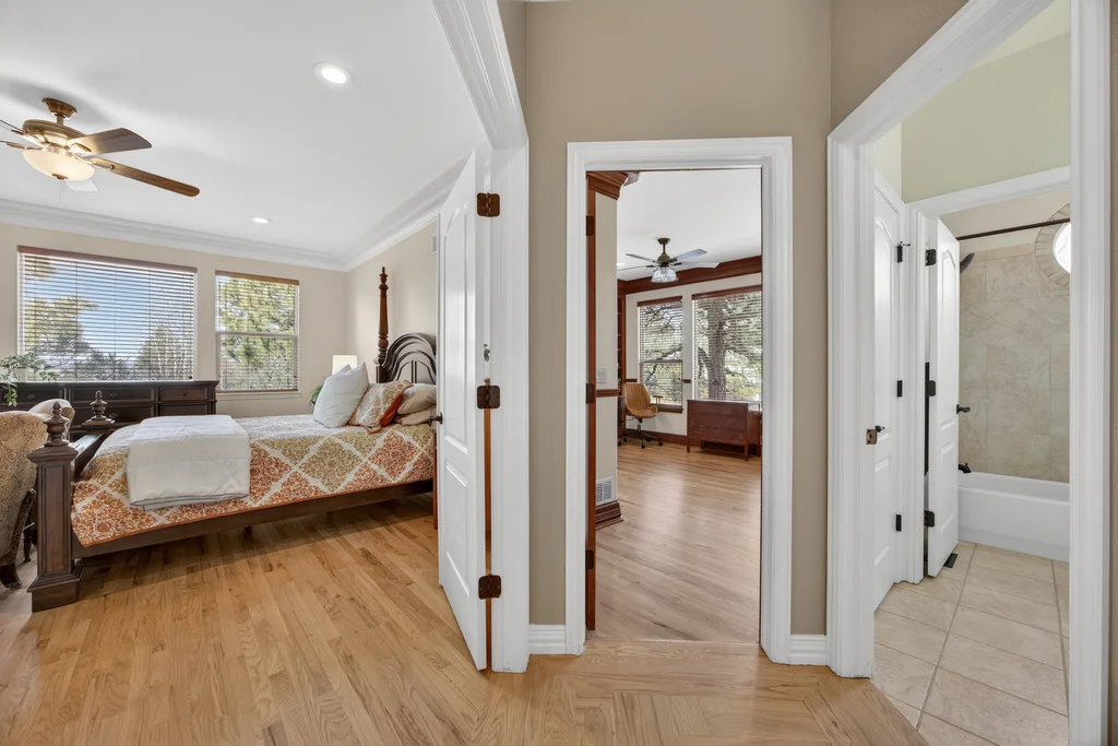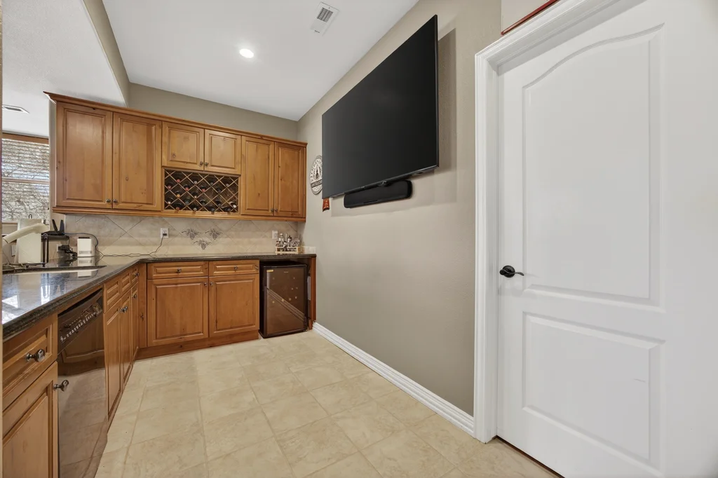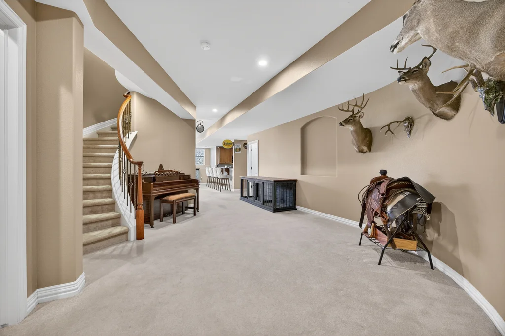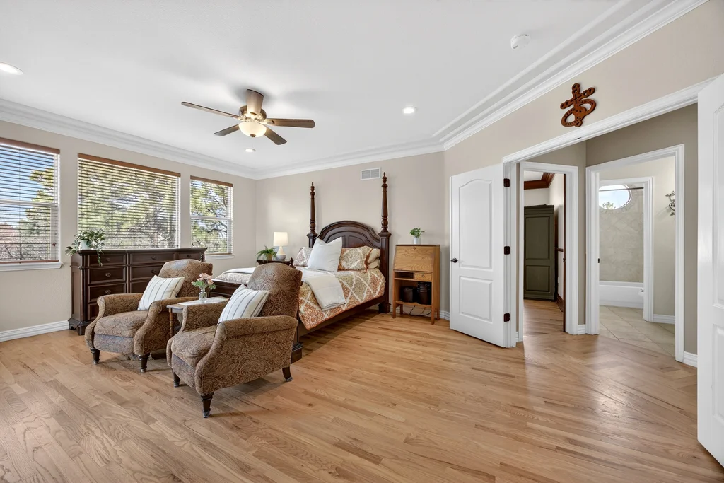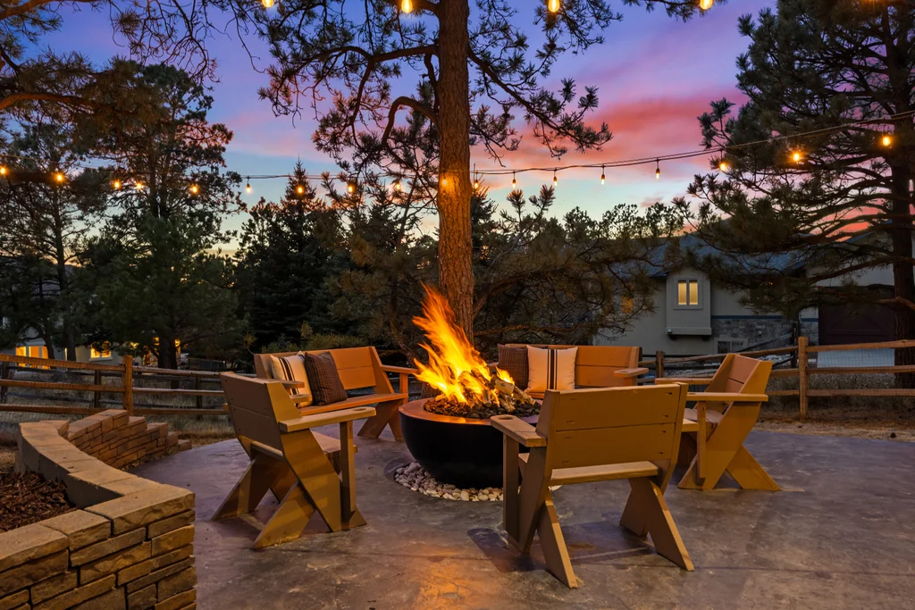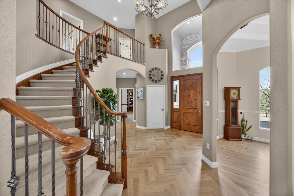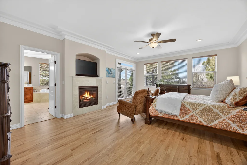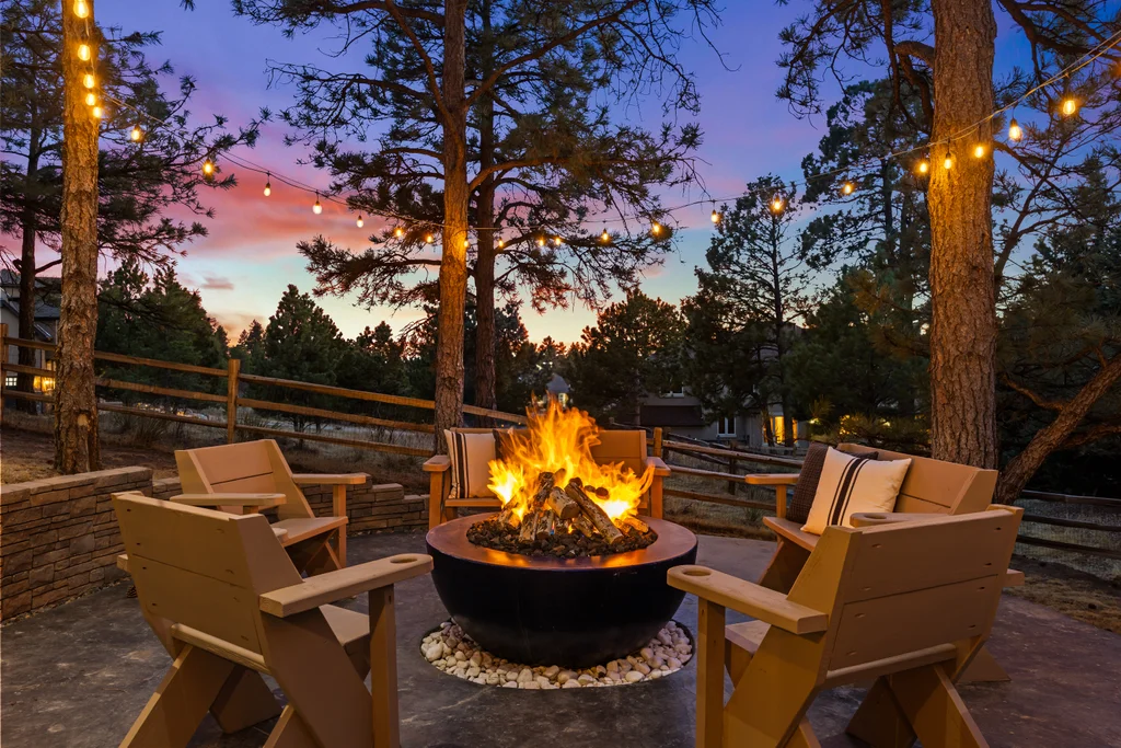 Set in The Timbers at The Pinery, this beautiful home offers peaceful Colorado views, privacy, and an ideal layout for everyday living and entertaining just minutes from downtown Parker. With over 4,800 finished sq ft, 5 bedrooms and 6 baths, the floorplan shines with a main-floor primary suite featuring a cozy fireplace, 5-piece bath, and oversized walk-in closet, plus a main-level office with built-ins, closet, and adjacent full bath that functions perfectly as a guest suite. The heart of the home is the expansive, two-story family room and the large eat-in kitchen complete with new countertops, new appliances (including a Bosch dishwasher 2023), updated hardware/fixtures, pantry, and a second sink on the island, flowing seamlessly to the dining space with a striking two-sided fireplace. Upstairs, discover three oversized bedrooms, each with its own private en suite, enhanced with thoughtful touches like added barn doors. The finished walkout basement is designed for fun and flexibility with a granite-topped wet bar (sink, beverage fridge, dishwasher), spacious game/flex areas, theater/movie room, and impressive storage including a finished storage room near the bar. Step outside to enjoy multiple outdoor living spaces: a covered upper patio with gas fire pit with access from the kitchen and living room, plus a lower concrete patio with fire pit, gas line for grill, new retaining wall and stairs, and newer fencing (property extends beyond the fenced area). Tech and comfort upgrades include programmable interior/exterior lighting, auto locks, Blink doorbell/cameras, radon mitigation, and wiring for EV charging (240V/50A). The roof is 2 years old with transferable warranty, and mechanicals have been recently serviced. A rare opportunity to own a truly turn-key home on a large, private lot in one of Parker’s most sought-after communities.