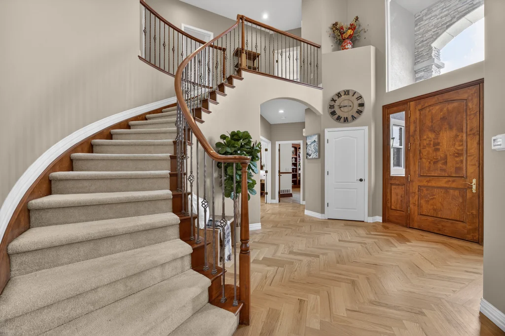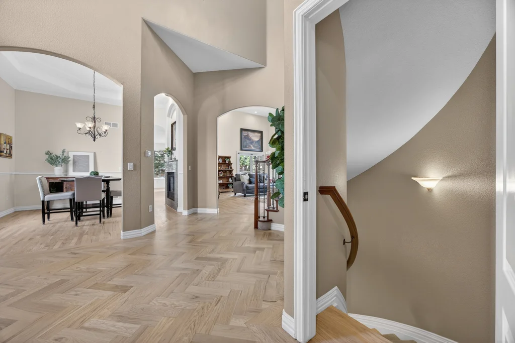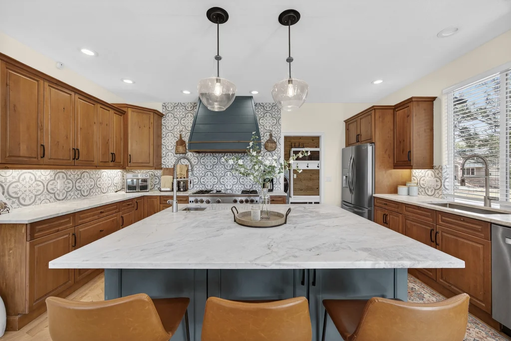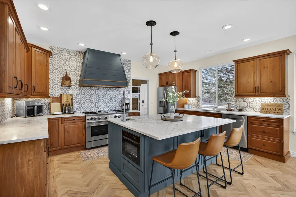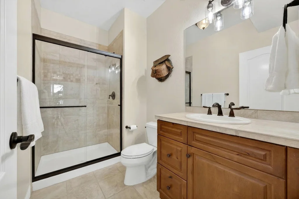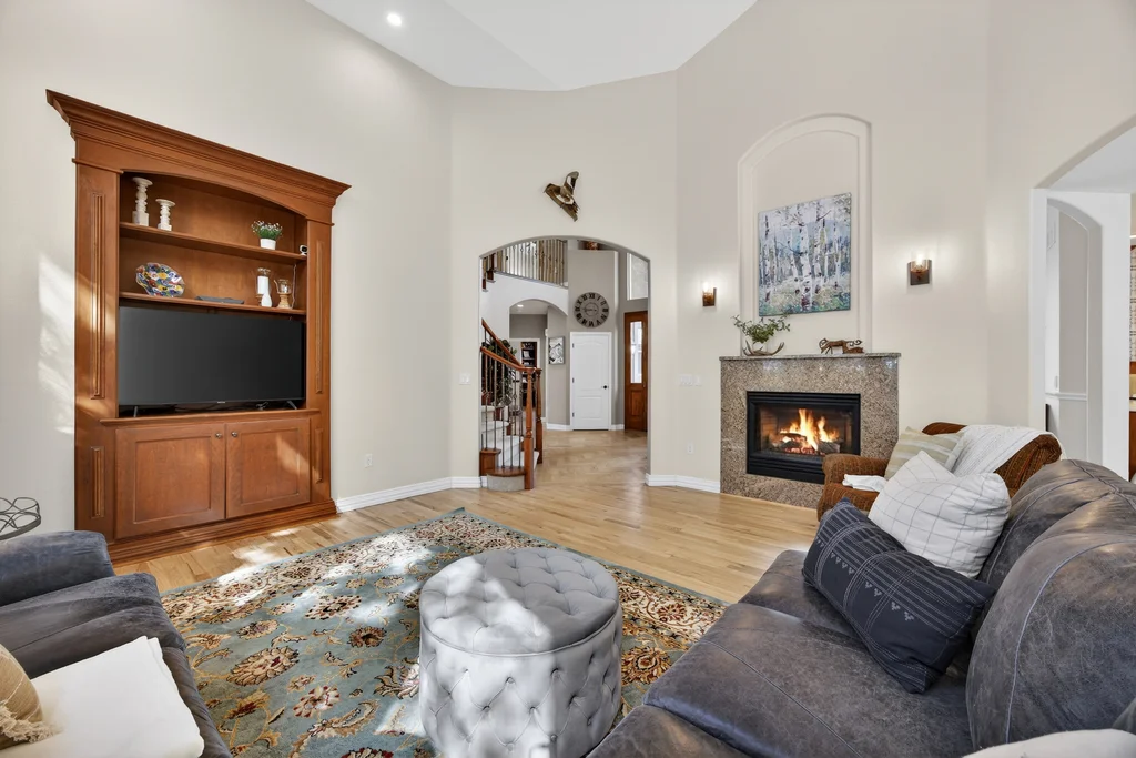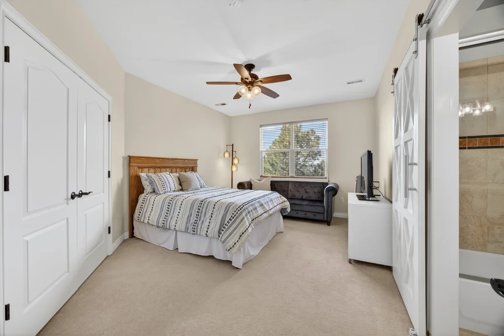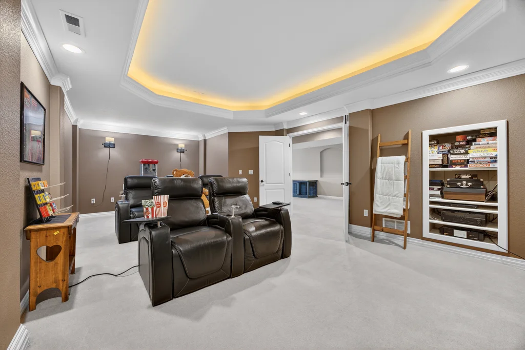 Set in The Timbers at The Pinery, this beautiful home offers peaceful Colorado views, privacy, and an ideal layout for everyday living and entertaining just minutes from downtown Parker. With over 4,800 finished sq ft, 5 bedrooms and 6 baths, the floorplan shines with a main-floor primary suite featuring a cozy fireplace, 5-piece bath, and oversized walk-in closet, plus a main-level office with built-ins, closet, and adjacent full bath that functions perfectly as a guest suite. The heart of the home is the expansive, two-story family room and the large eat-in kitchen complete with new countertops, new appliances (including a Bosch dishwasher 2023), updated hardware/fixtures, pantry, and a second sink on the island, flowing seamlessly to the dining space with a striking two-sided fireplace. Upstairs, discover three oversized bedrooms, each with its own private en suite, enhanced with thoughtful touches like added barn doors. The finished walkout basement is designed for fun and flexibility with a granite-topped wet bar (sink, beverage fridge, dishwasher), spacious game/flex areas, theater/movie room, and impressive storage including a finished storage room near the bar. Step outside to enjoy multiple outdoor living spaces: a covered upper patio with gas fire pit with access from the kitchen and living room, plus a lower concrete patio with fire pit, gas line for grill, new retaining wall and stairs, and newer fencing (property extends beyond the fenced area). Tech and comfort upgrades include programmable interior/exterior lighting, auto locks, Blink doorbell/cameras, radon mitigation, and wiring for EV charging (240V/50A). The roof is 2 years old with transferable warranty, and mechanicals have been recently serviced. A rare opportunity to own a truly turn-key home on a large, private lot in one of Parker’s most sought-after communities.